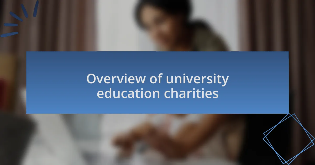 University education charities play a pivotal role in bridging gaps in access to quality education. They offer scholarships, funding for programs, and resources that empower students who may otherwise face financial constraints. I remember attending a fundraiser where I saw firsthand how passionate donors could transform lives through their contributions.